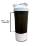 This shaker’s 600 ml capacity allows you to combine your favorite protein shakes, smoothies, or pre-workout vitamins. Its sleek form fits nicely in your hand and provides a comfortable grip, allowing you to shake with ease.
