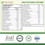 Choose Pure Nutrition Multivitamin for Men because it delivers complete daily nutrition tailored specifically for men, combining essential vitamins, minerals, and powerful herbal extracts like Ginseng, Moringa, Fenugreek, and Green Tea to support immunity, energy, stamina, metabolism, and bone health. Its vegetarian formulation helps bridge nutritional gaps caused by modern lifestyles, boosts physical performance and vitality, strengthens the body’s natural defenses, and supports long-term overall health—making it a reliable daily supplement for active, health-conscious men.