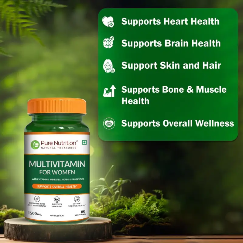 Pure Nutrition Multivitamin for Women is a thoughtfully formulated daily supplement designed to support the unique nutritional needs of women. Enriched with 39 essential vitamins, minerals, and herbal extracts, this multivitamin helps promote overall health, hormonal balance, and long-term wellness.